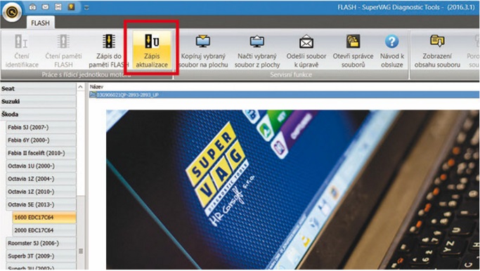 Pokud vlastníte diagnostický nástroj SuperVAG, tak je možné využít licenci FLASH, která umožňuje mimo aktualizaci SW také práci s datovými soubory, jejich čtení a zápis. To vám umožní využití širokého spektra funkcí například pro navýšení výkonu a optimalizace spotřeby. Nově teď také snadné úpravy pro Octavii III, Golfu VI apod.